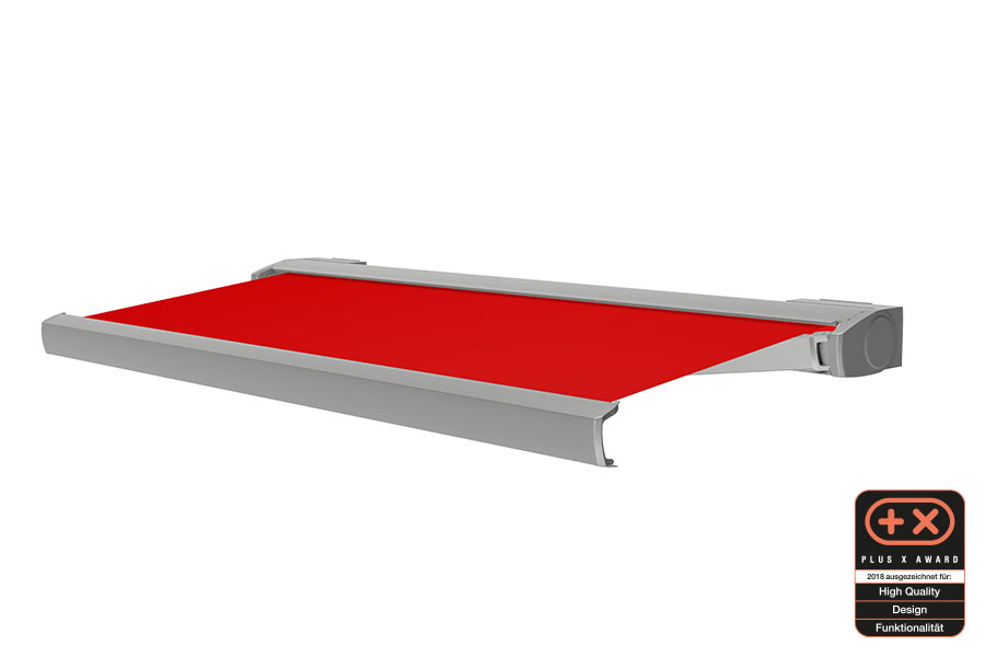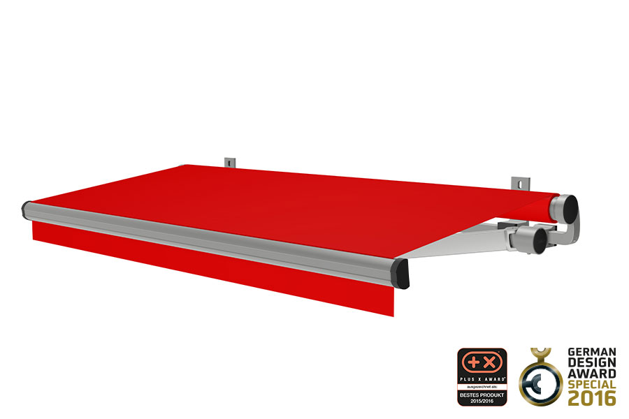 Eine zeitlose Form der Gelenkarmmarkise durch ein schlankes, elegantes Design.