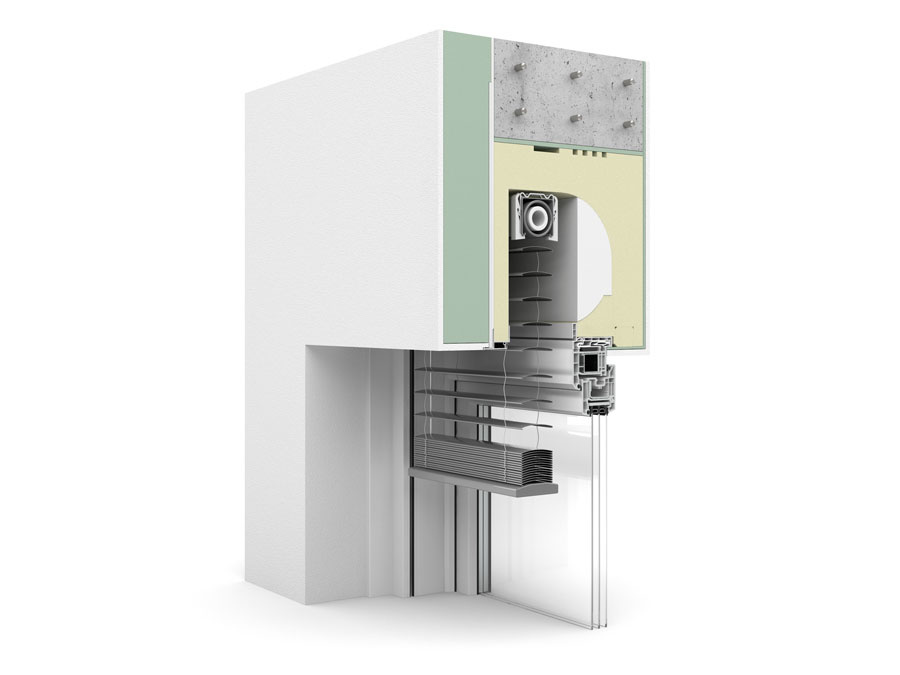 Energieeffizienter Raffstore in der Dämmebene im Vorbaukasten.